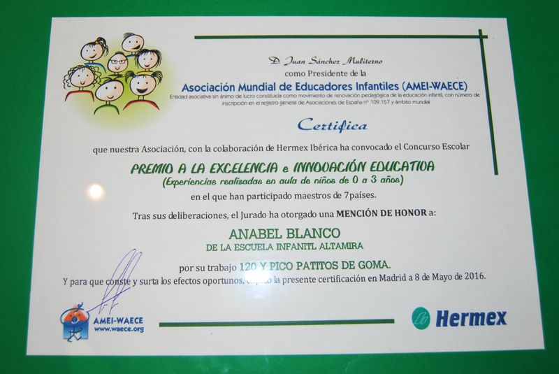 Anabel Blanco, como responsable del proyecto agradece profundamente este reconocimiento. “Nos sentimos privilegiados de trabajar con la infancia y niños de 0 a 3 años. Más que una profesión es una pasión, una vocación y un placer poder acompañarles en su crecimiento. Nos nutrimos de sus abrazos y besos llenando cada uno de nuestros días. Así es como vivimos en la Escuela Infantil, un lugar donde la vida florece, despliega sus alas y donde acariciamos el alma jugando. Cada uno de los educadores de nuestras Escuelas Infantiles se entrega en cuerpo y alma para dar lo mejor de sí mismo. Es en este caminar donde recibimos de los niños un poco de ellos mismo, lo que nos hace crecer como personas, como equipo y como profesionales y en definitiva lo que nos hace valorar lo más importante que tenemos entre nuestras manos, el futuro, la vida”.