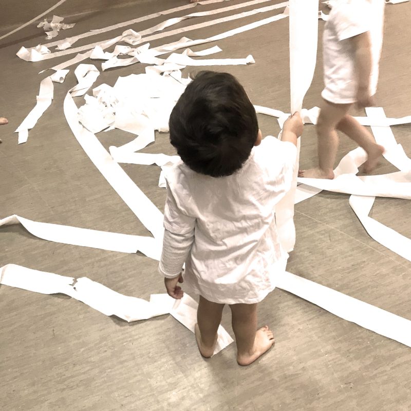 El Papel es uno de los materiales educativos más importantes ya que es una fuente inagotable de posibilidades expresivas debido a las múltiples funciones que desempeña como por ejemplo promotor del desarrollo psicomotriz, estimulador del pensamiento matemático y del desarrollo espacial. En este caso hemos elegido papel higiénico para realizar una actividad en el aula de 2-3 años. Durante el desarrollo de la misma hemos podido observar: verticalidad, disfrute, recorrido, juego compartido, curiosidad, concentración…
