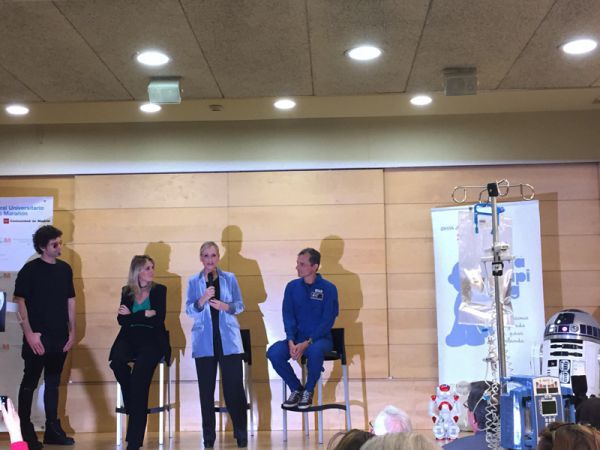 La inauguración contó con la presencia del astronauta Pedro Duque y del Presidente de Honor de la Fundación Juegaterapia, el televisivo Hombre de Negro. Durante la presentación conocimos lo positivo de este tipo de iniciativas en los niños que pasan largas estancia y tratamientos en hospitales y la importancia de un entorno agradable y divertido para su recuperación. La Estación Lunar atenderá a unos 700 ingresos al año y será un lugar donde sus pequeños visitantes aprenderán y se divertirán viendo películas, juegos sobre el universo, haciendo amigos robóticos y hasta viendo un amanecer virtual.