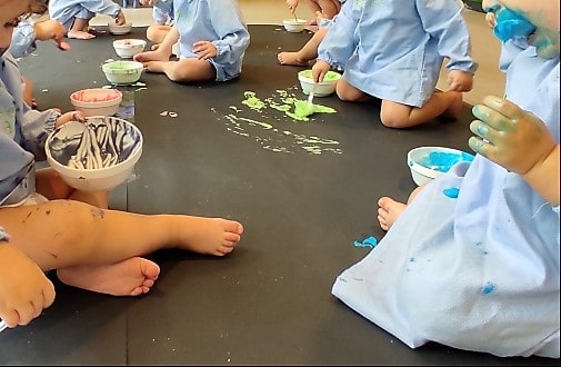 Una actividad sensorial en la que ponemos en juego la creatividad utilizando todos los sentidos: tacto, gusto, olfato… tocando, oliendo, saboreando, visualizando los trazos que producimos extendiendo el yogur por nuestro cuerpo, el papel o los cristales.