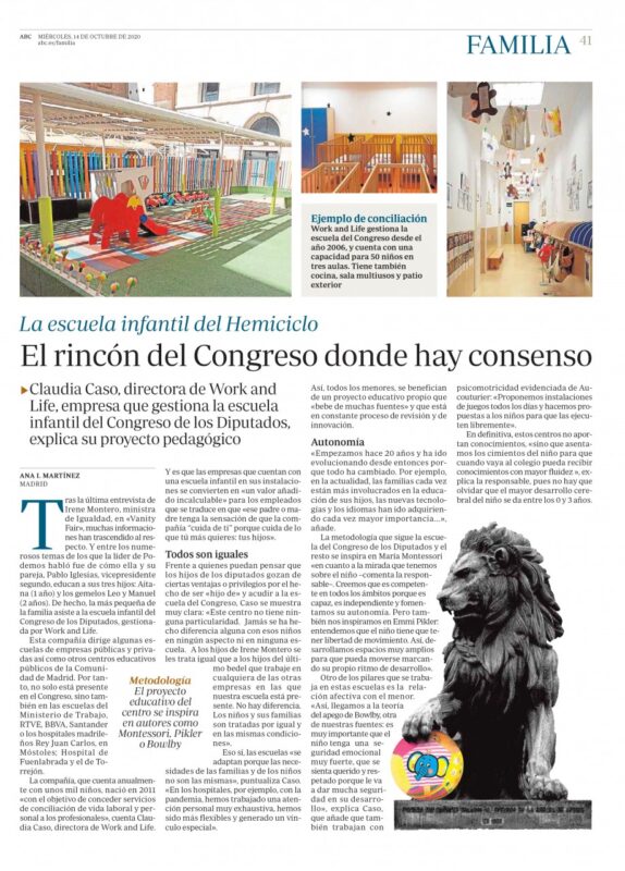 Aquí os dejamos la entrevista de ABC a Claudia Caso, una de nuestras socias directoras, donde podéis conocer más detalles de nuestro Proyecto Educativo y Método Pedagógico, además de La Escuela Infantil del Congreso de los Diputados.