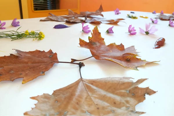 En la Escuela Hospital Universitario Rey Juan Carlos vivimos todo lo que acontece a nuestro alrededor con mucha intensidad. Escuchamos, respiramos, olemos… ¿lo notas? Es el otoño que nos envuelve con su infinidad de colores, olores, sonidos….lo sentimos, lo vivimos, olemos y escuchamos…todo forma parte de un proceso: observamos, exploramos, recogemos las hojas que caen y están a nuestro alcance, con ellas estimulamos nuestros sentidos con las diferentes texturas, olores y sonidos….¡Ay va si suenan al pisarlas y sobre todo al manipularlas y estrujarlas, crujen y no solo eso, ¡podemos pintar con ellas!, desarrollamos nuestra capacidad de disfrute jugando con los materiales que nos ofrece nuestro entorno. Os dejamos una pequeña representación de nuestra gran obra. Creación única, obra autentica disfrutada y sentida en plenitud, ¿Qué os parece?.