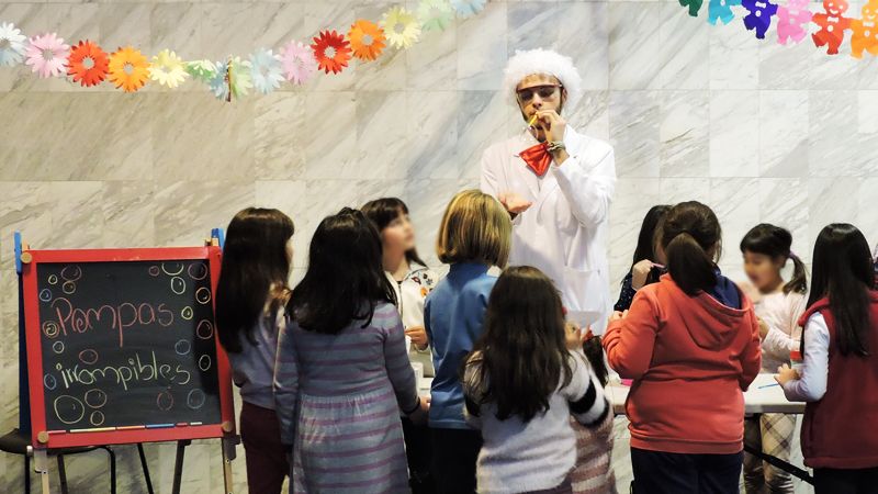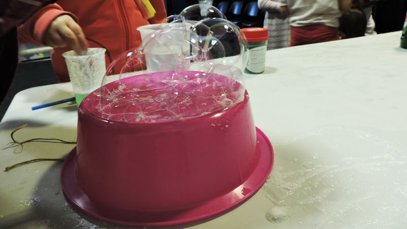 Para los niños más mayores se realizaron talleres y juegos adaptados a sus edades. Nuestro científico loco no paró de hacer demostraciones en su taller de “pompas irrompibles”.